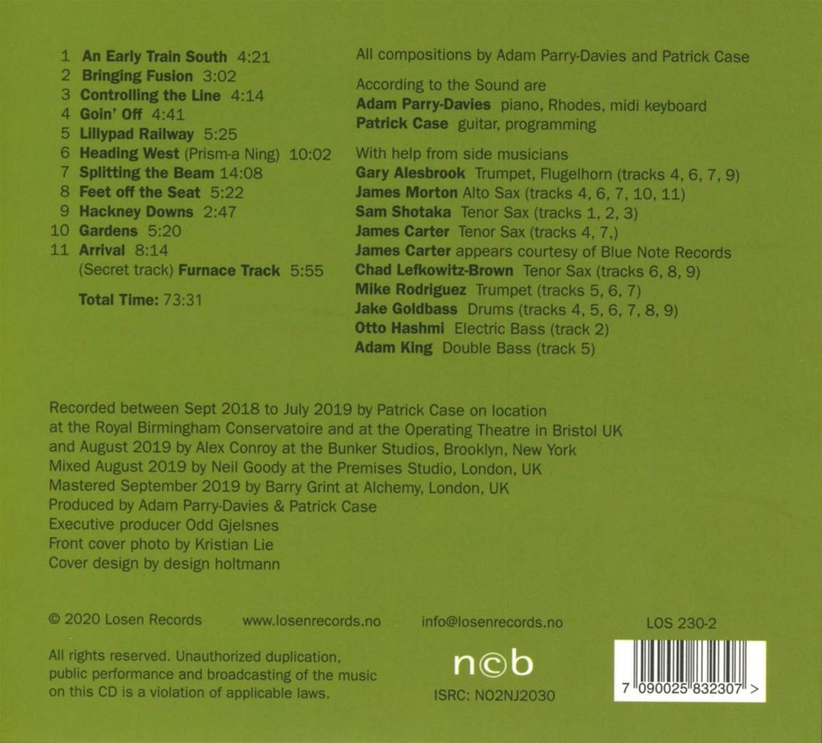 Recorded between Sept 2018 to July 2019 by Patrick Case on location at the Royal Birmingham Conservatoire and at the Operating Theatre in Bristol UK and August 2019 by Alex Conroy at the Bunker Studios, Brooklyn, New York